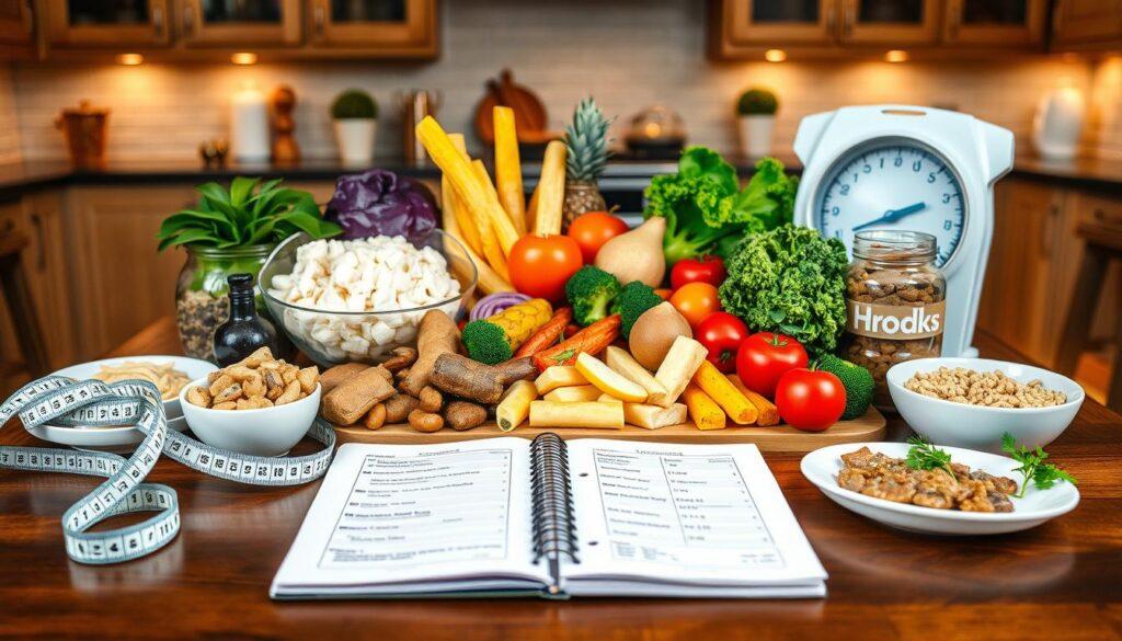 Balanced nutrition with appropriate portions of proteins, carbs, and healthy fats.