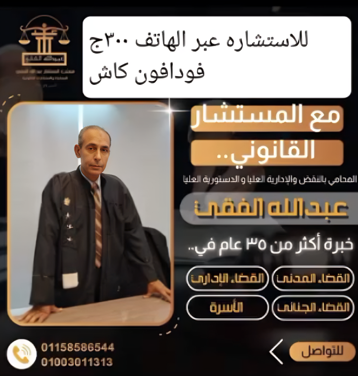Do not hesitate to contact Counsel Abdullah El-Feky for specialized legal consultation in Court of Cassation cases or international arbitration. We are here to protect your rights and achieve justice!