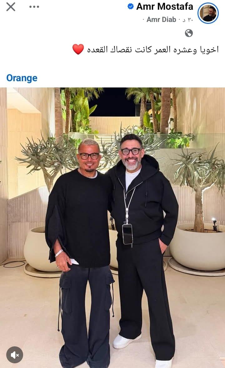 في خطوة لافتة أعادت الأنظار إلى العلاقة الفنية بينهما ❤️🎶، قام الملحن عمرو مصطفى بإعادة نشر صورة تجمعه بالهضبة عمرو دياب، كانت قد نشرها الأخير عبر صفحته الرسمية، وعلق عليها قائلًا: "أخويا وعِشرة العمر… كانت ناقصاك القعدة" ✨، في إشارة تحمل طابع الود والتقارب بعد سنوات من الخلافات التي شهدها الوسط الفني بينهما.