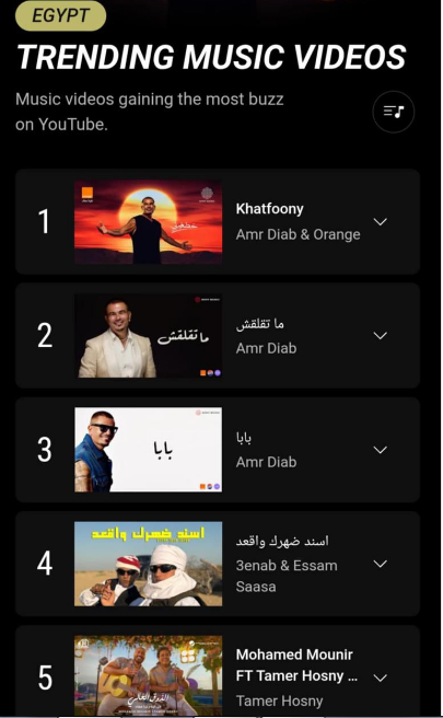 وقد تصدّرت أغنية "خطفوني" من الألبوم قائمة الأكثر رواجًا على موقع يوتيوب، حيث جاءت في المركز الأول على تريند مصر، تلتها أغنية "متقلقش" في المركز الثاني، بينما احتلت أغنية "بابا" المرتبة الثالثة، ليحتكر الهضبة المراكز الثلاثة الأولى بأغنيات مختلفة من ألبوم واحد، وهو إنجاز نادر يعكس جماهيريته الطاغية وقدرته على التجدد والتنوع في كل إصدار جديد.