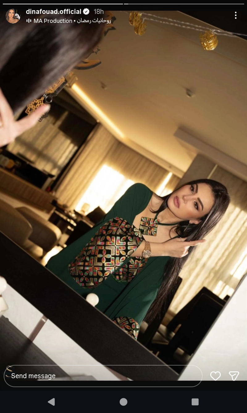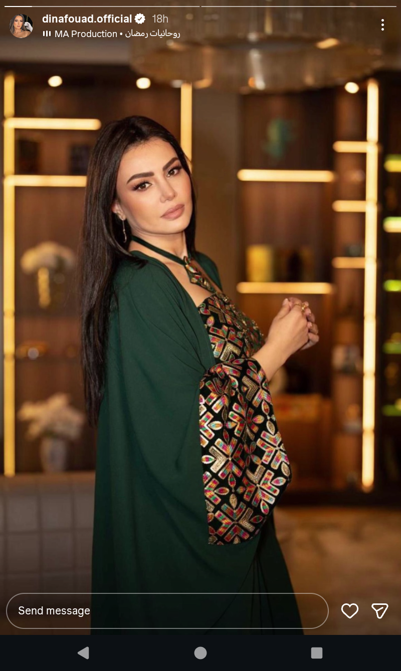 خطفت الفنانة دينا فؤاد الأنظار بعد مشاركتها مجموعة صور جديدة عبر خاصية “الاستوري” على حسابها الرسمي بموقع إنستجرام 📱، ظهرت خلالها بإطلالة رمضانية مميزة تعكس أجواء الشهر الكريم وروحانياته 🌙✨.
