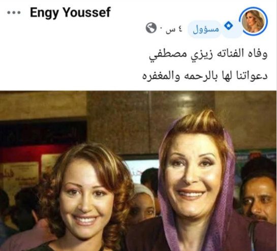 عاشت مواقع التواصل الاجتماعي خلال الساعات الماضية حالة من القلق والارتباك، بعد انتشار خبر وفاة الفنانة المعتزلة زيزي مصطفى، والدة النجمة منة شلبي، بشكل مفاجئ عبر الحساب الرسمي للفنان هشام جمال، الذي نشر الخبر دون أن يستند إلى مصدر رسمي أو معلومة مؤكدة، مما أثار حالة من البلبلة بين الجمهور وعدد من الفنانين.