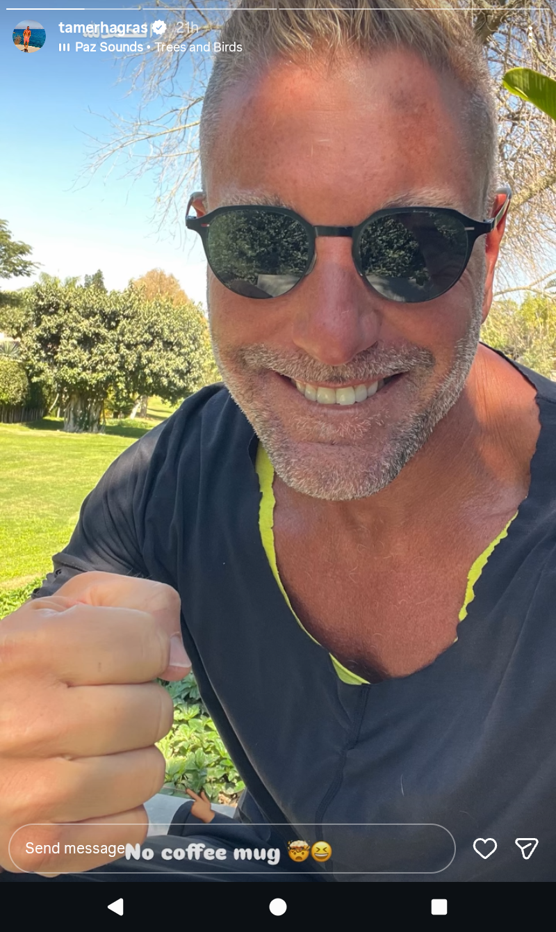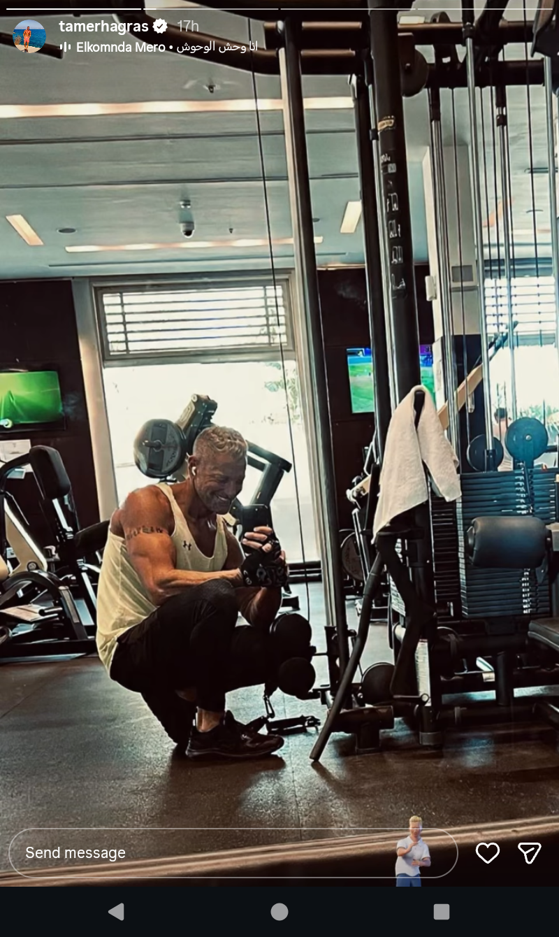 نشر الفنان تامر هجرس صورة جديدة له عبر خاصية الاستوري على موقع إنستجرام 📱، ظهر فيها داخل صالة الألعاب الرياضية أثناء ممارسته تدريباته اليومية 💪، في إطار حرصه الدائم على الحفاظ على لياقته البدنية ومظهره الفني.