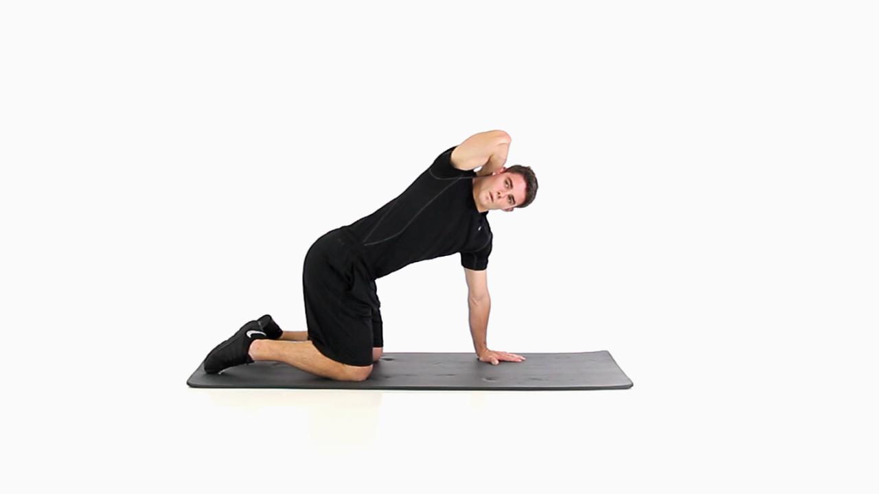 على اليدين والركبتين، تقويس الظهر للأعلى ثم خفض البطن ورفع الرأس، 10 مرات ببطء.