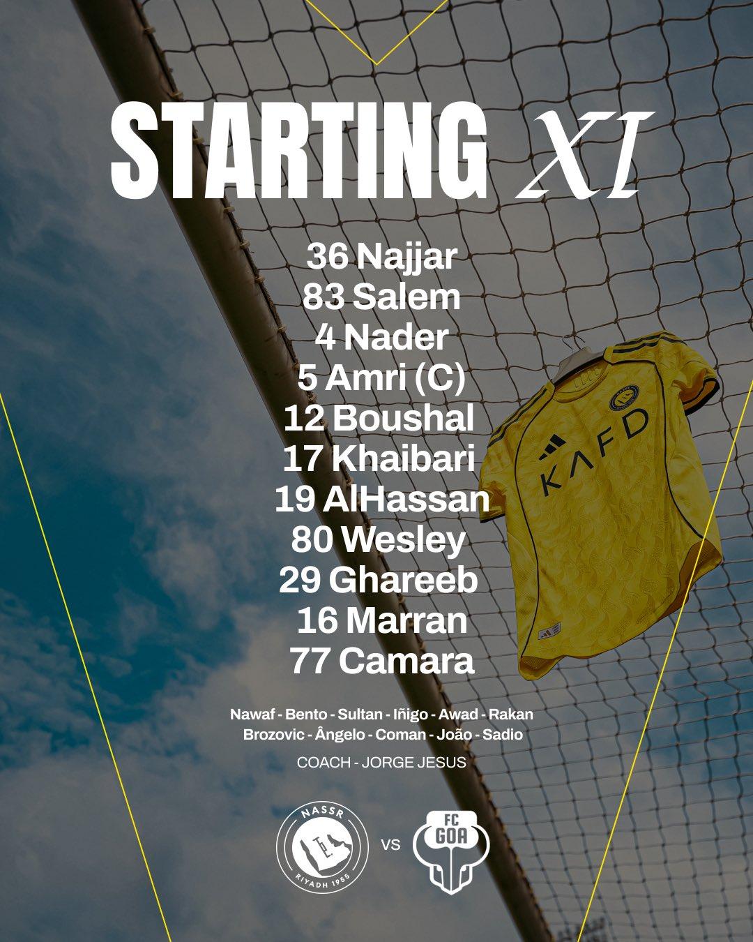 🔸 تشكيلة النصر أمام جوا الهندي: