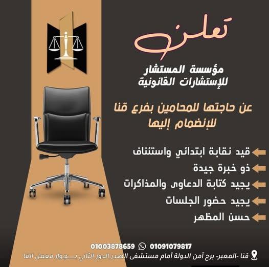 📍 قنا: المعبر، برج أمن الدولة، الدور الثاني (بجوار الرقابة الإدارية)
