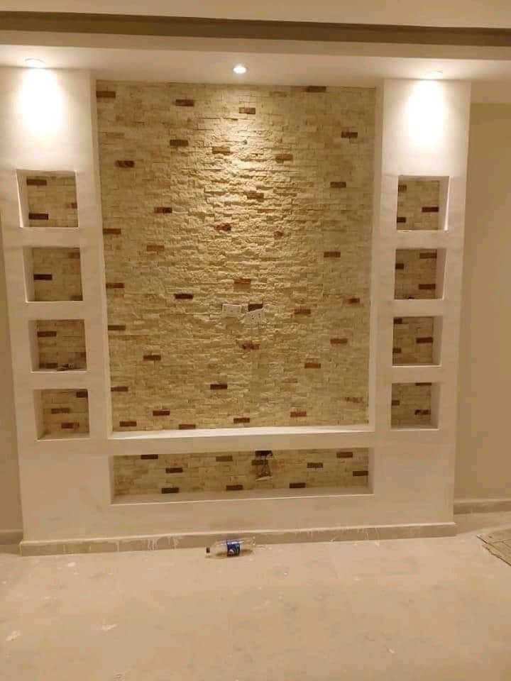 يُبدع حماده في تنفيذ ديكورات الحوائط الحديثة مثل الحجر الصناعي، الباركيه الجداري، ورق الحائط، والتأثيرات اللونية المميزة.